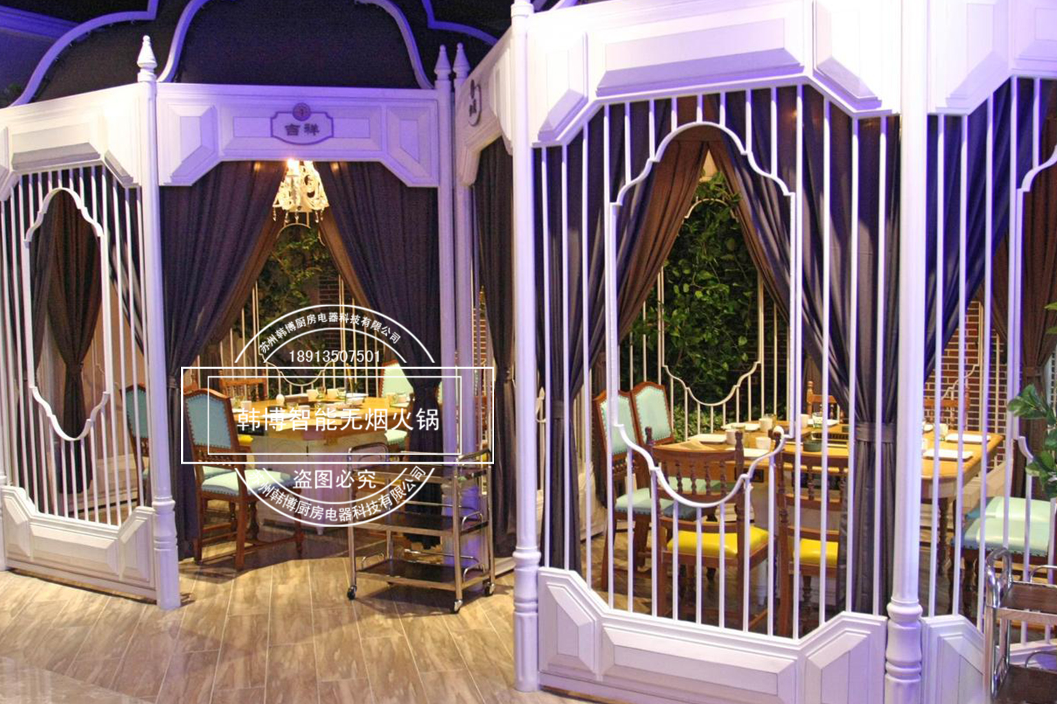 店內(nèi)的裝修也是很時(shí)尚,這里到處都是能讓人賞心悅目的裝飾,特別溫馨浪漫,精心的布置、但細(xì)節(jié)更動(dòng)人!因?yàn)樵谶@你看不到油煙四處升騰的現(xiàn)象,這一切都是由于使用了韓博智能無(wú)煙火鍋設(shè)備油煙凈化系統(tǒng)讓油煙魔力般的往下吸走,吸油煙率高達(dá)99%,從而營(yíng)造了一個(gè)溫馨時(shí)尚的就餐環(huán)境。