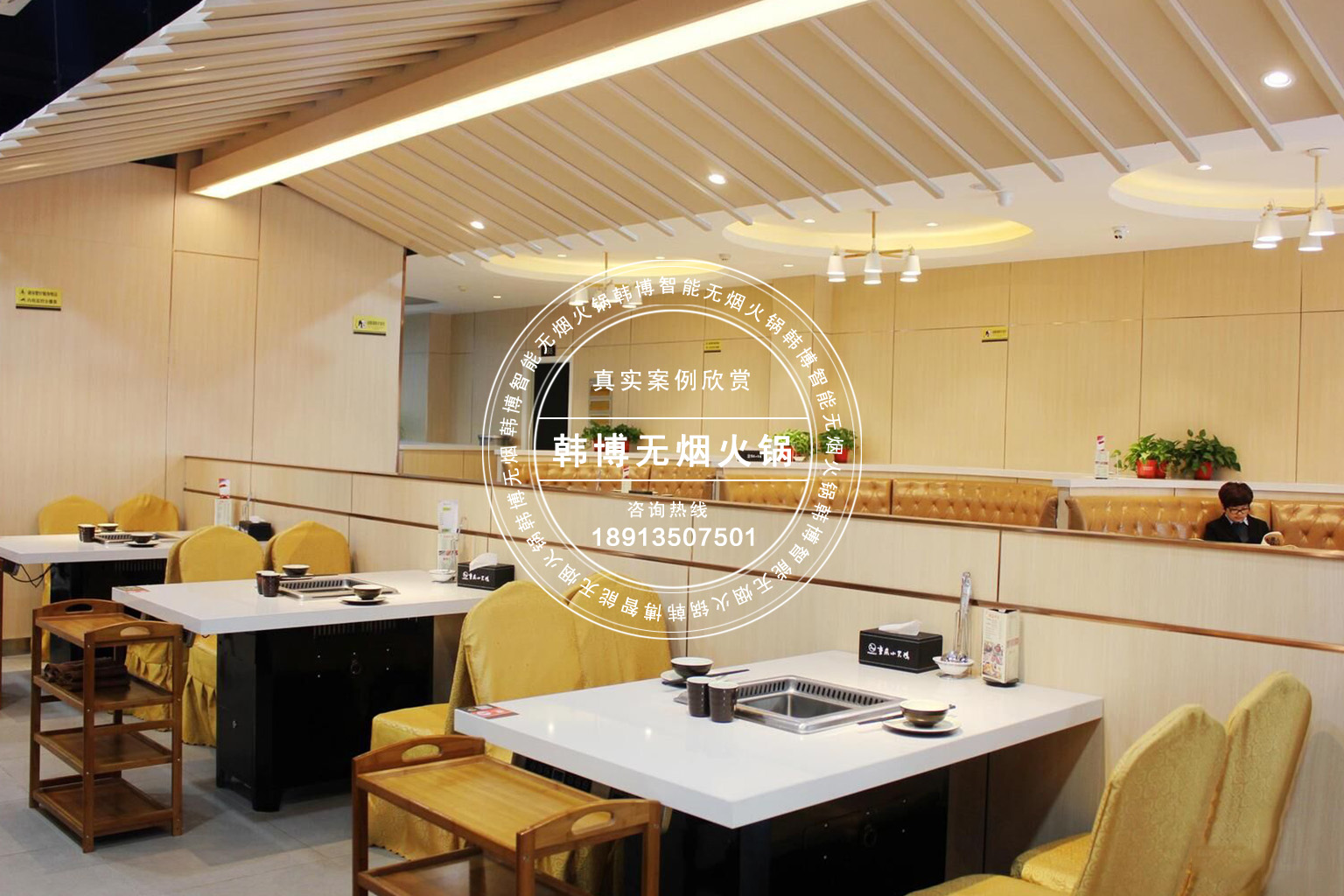 店里還特別安裝了智能無煙火鍋桌,桌子底下都裝有油煙凈化系統(tǒng),是老板特別從韓博定制的,無需下排煙管道,吸煙率高達(dá)99%以上。