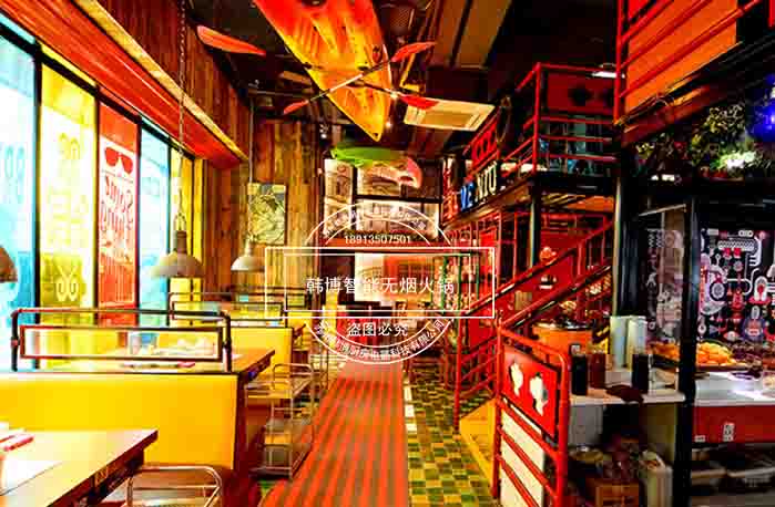 店內(nèi)采用許多年輕元素,時尚活力涂鴉,餐廳處處充滿趣味格調(diào)和時尚新鮮感,給顧客營造一種輕松愉快的環(huán)境。在這吃火鍋你不用擔心油煙味,因為它選用了韓博智能無煙火鍋設(shè)備,節(jié)能、安全、高檔、環(huán)保,油煙去除率高達99%。